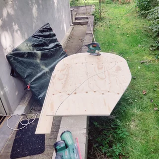 完成的基礎框架先用刨光的膠合板(10 毫米)臨時鋪設。